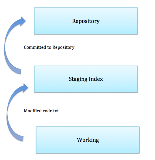 In this structure we create a repository add some files on them and then after initialising the repository in working copy we make changes in our codes then we add those modified files to staging index then finally we commit it on our repository