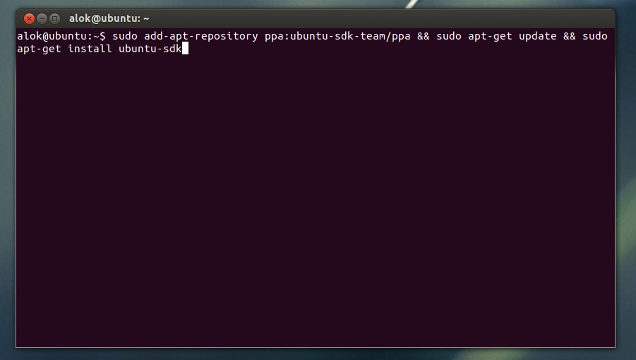 $sudo add-apt-repository ppa:ubuntu-sdk-team/ppa $sudo apt-get update && sudo apt-get install ubuntu-sdk