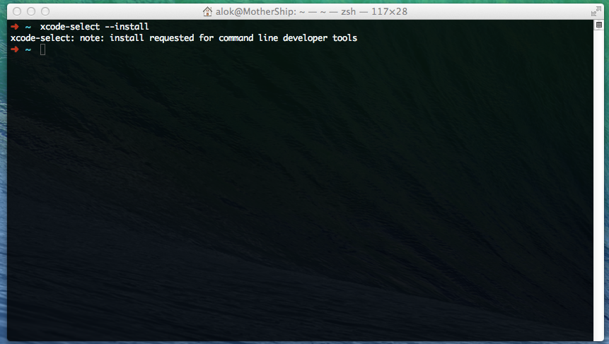 2 : Type “xcode-select —install. ” in terminal ( without quotes )