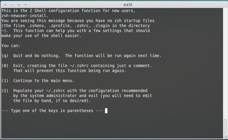 if you see some configuration stuffs like *This is the Z Shell configuration function for new users * etc just press 0