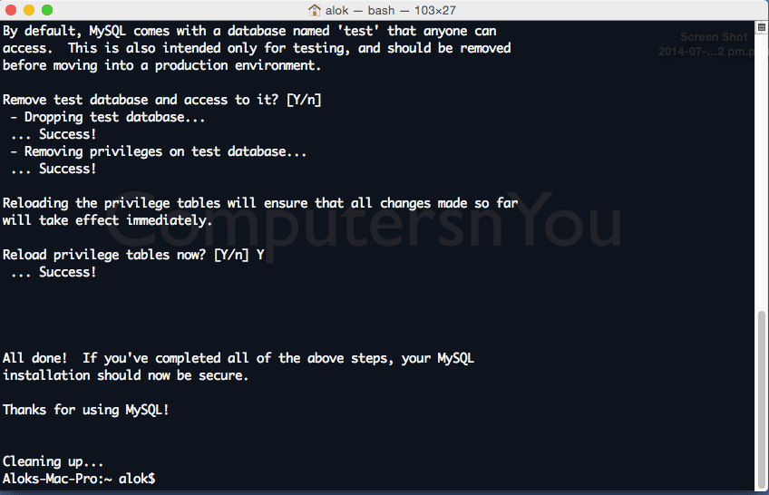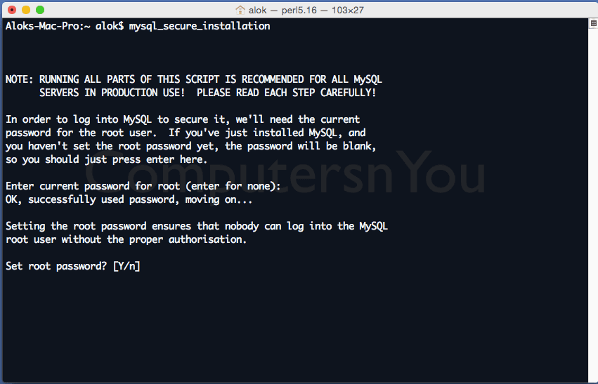 Aloks-Mac-Pro:~ alok$ mysql_secure_installation