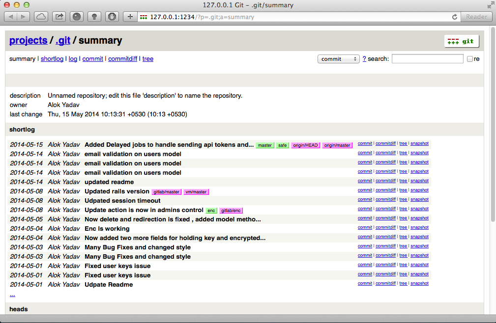 Okay lets start with gitweb , its originally written by Kay Sievers in Perl it can be used for browsing git repositories using web browser .