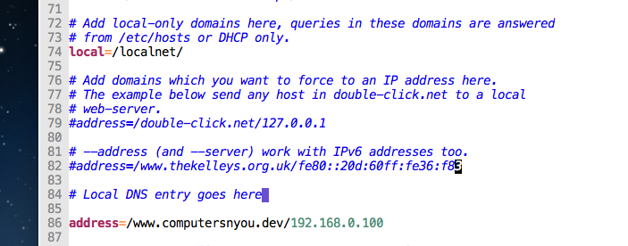 configuration file Ubuntu : /etc/dnsmasq.conf Mac : /usr/local/etc/dnsmasq.conf those are main configuration files for each platforms , let see how we can redirect all *.dev domains to localhost .