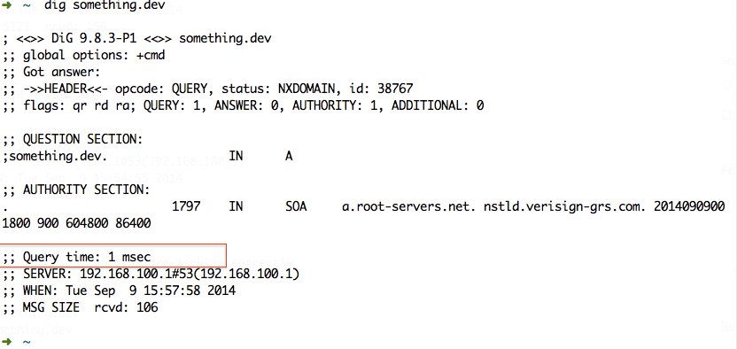 Linux : sudo /etc/init.d/dnsmasq restart MacOSX : sudo launchctl unload /Library/LaunchDaemons/homebrew.mxcl.dnsmasq.plist && sudo launchctl load /Library/LaunchDaemons/homebrew.mxcl.dnsmasq.plist lets verify local DNS caching First try