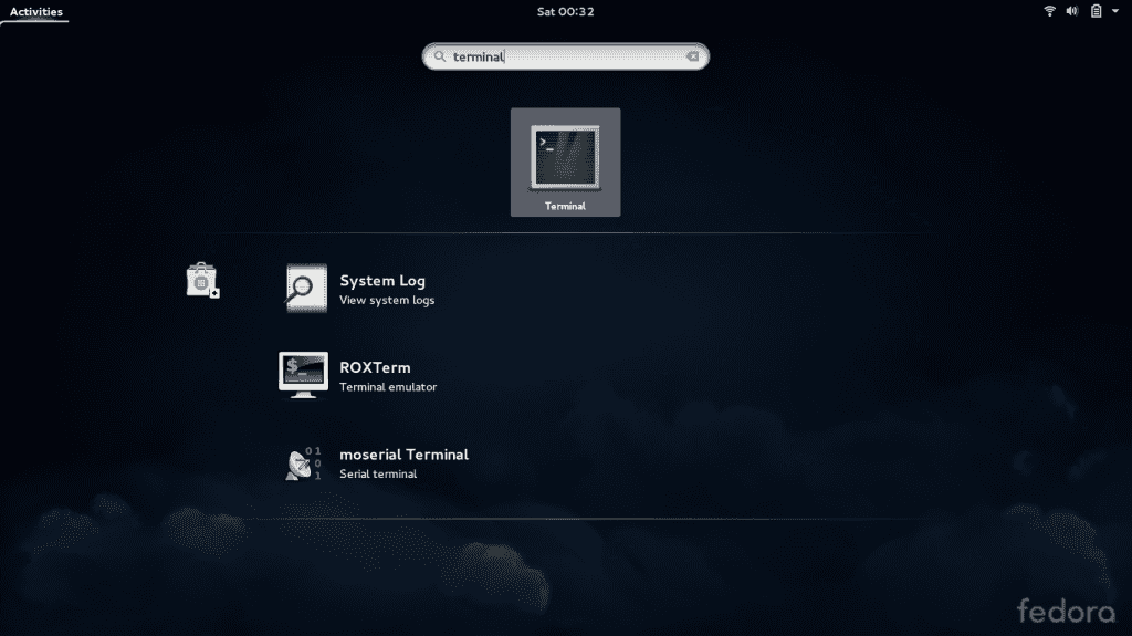 - Click on Activities or click ‘Windows’ or ‘super’ and search for ‘ terminal ‘