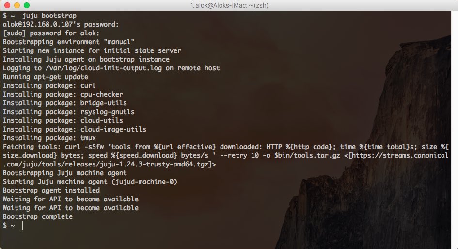 1 . Juju host : if you are on ubuntu then its fine you can use localhost as your juju host , or if you are on mac , then use a new fresh vm as ubuntu host