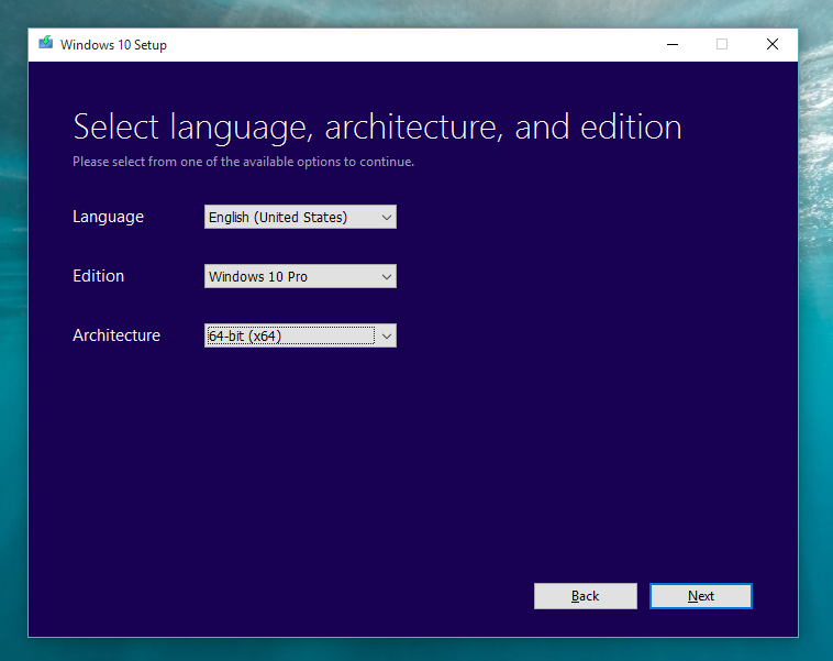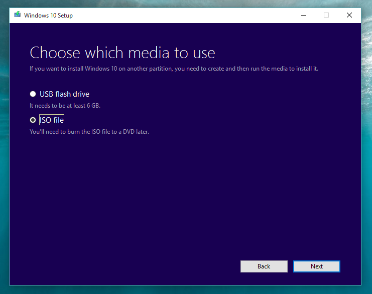 If you are on windows host , then download ” windows media creation tool ” and choose “Create installation media for another PC ”