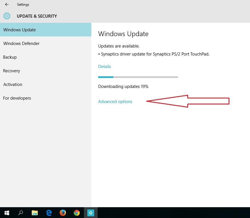- From update and security , click on ” Advanced Options ”