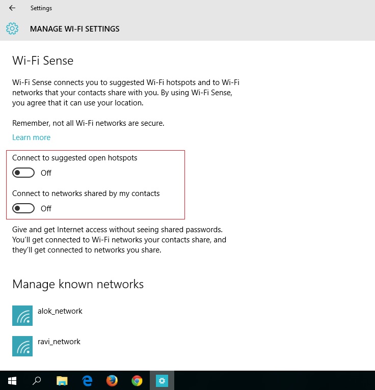 Adjust WiFi Settings : Follow these simple steps to disable all WiFi sense sharing feature