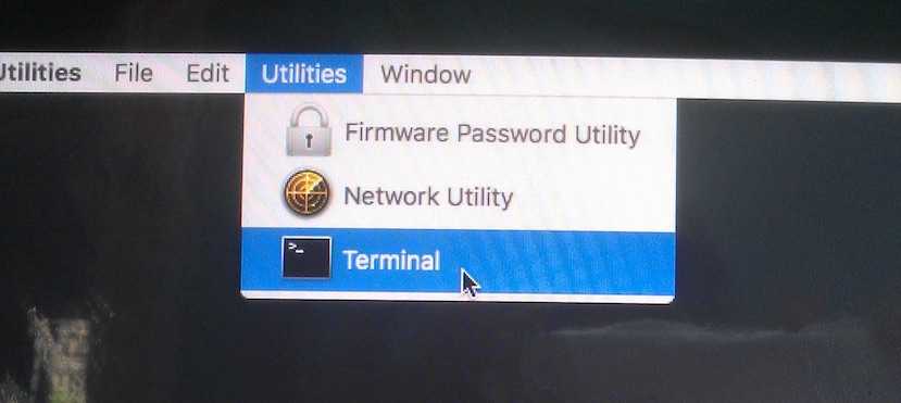 In Recovery Mode Click On ‘ Utilities > Terminal ‘