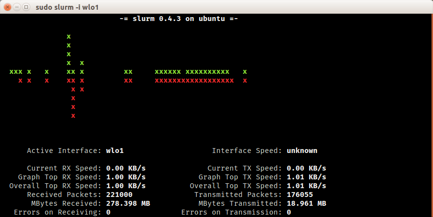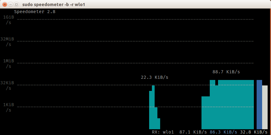 speedometer – measure and display the rate of data across a network connection , just pass -b -t -r eth1 where eth is your interface , to see something like this